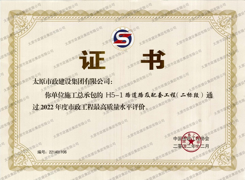 2022年度市政工程最高質(zhì)量水平評價_H5-1路道路及配套工程(二標段)